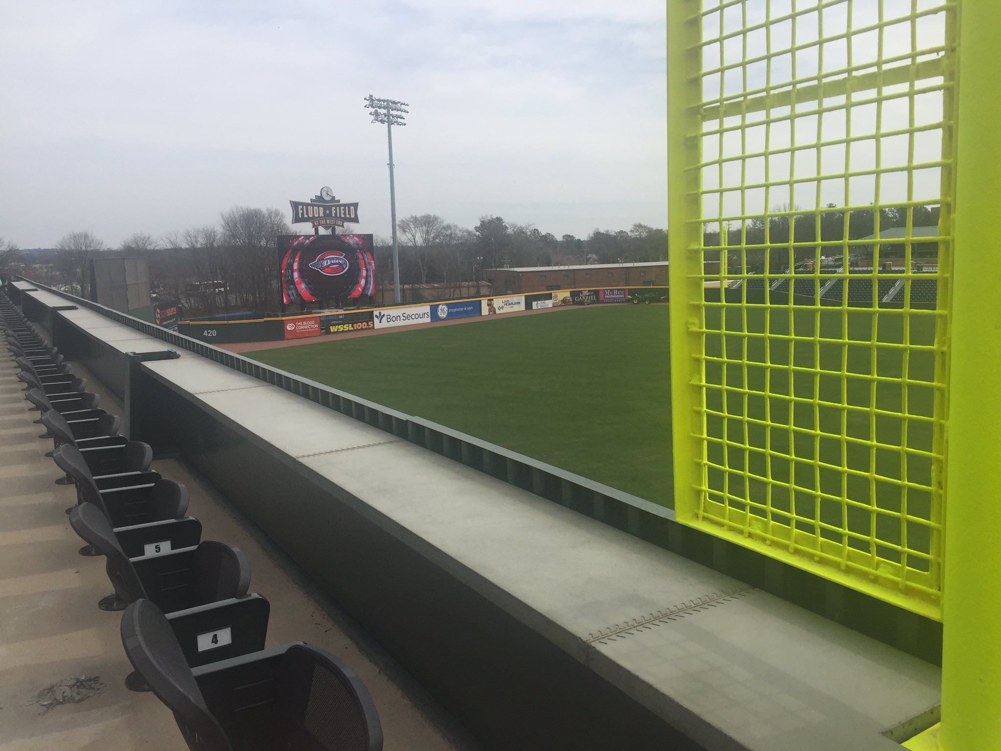 The Greenville Drive's Twitter and Facebook accounts recently posted these views of Fluor Field and the new seats added atop the left-field mini-Green Monster.